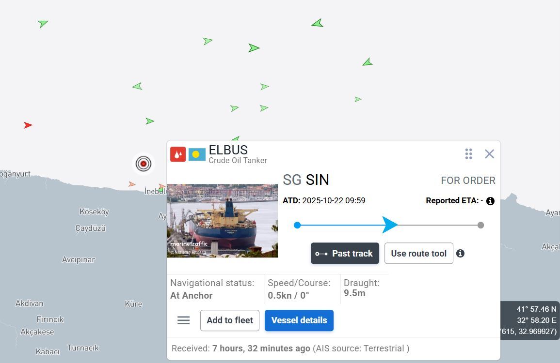 وتؤكد بيانات موقع Marinetraffic لتتبع حركة الملاحة البحرية وجود السفينة قبالة سواحل تركيا بالقرب من بلدة إني بولو.