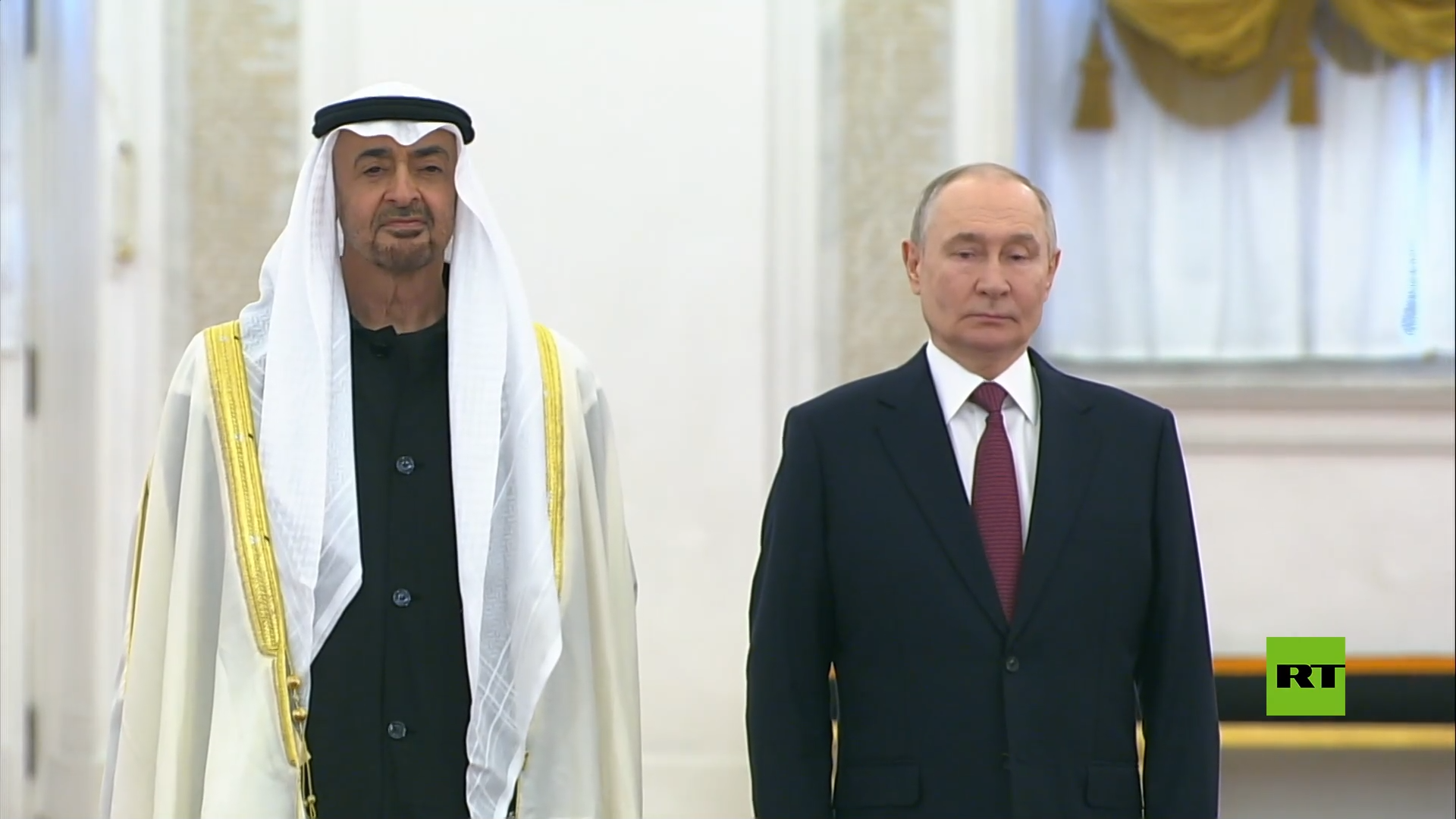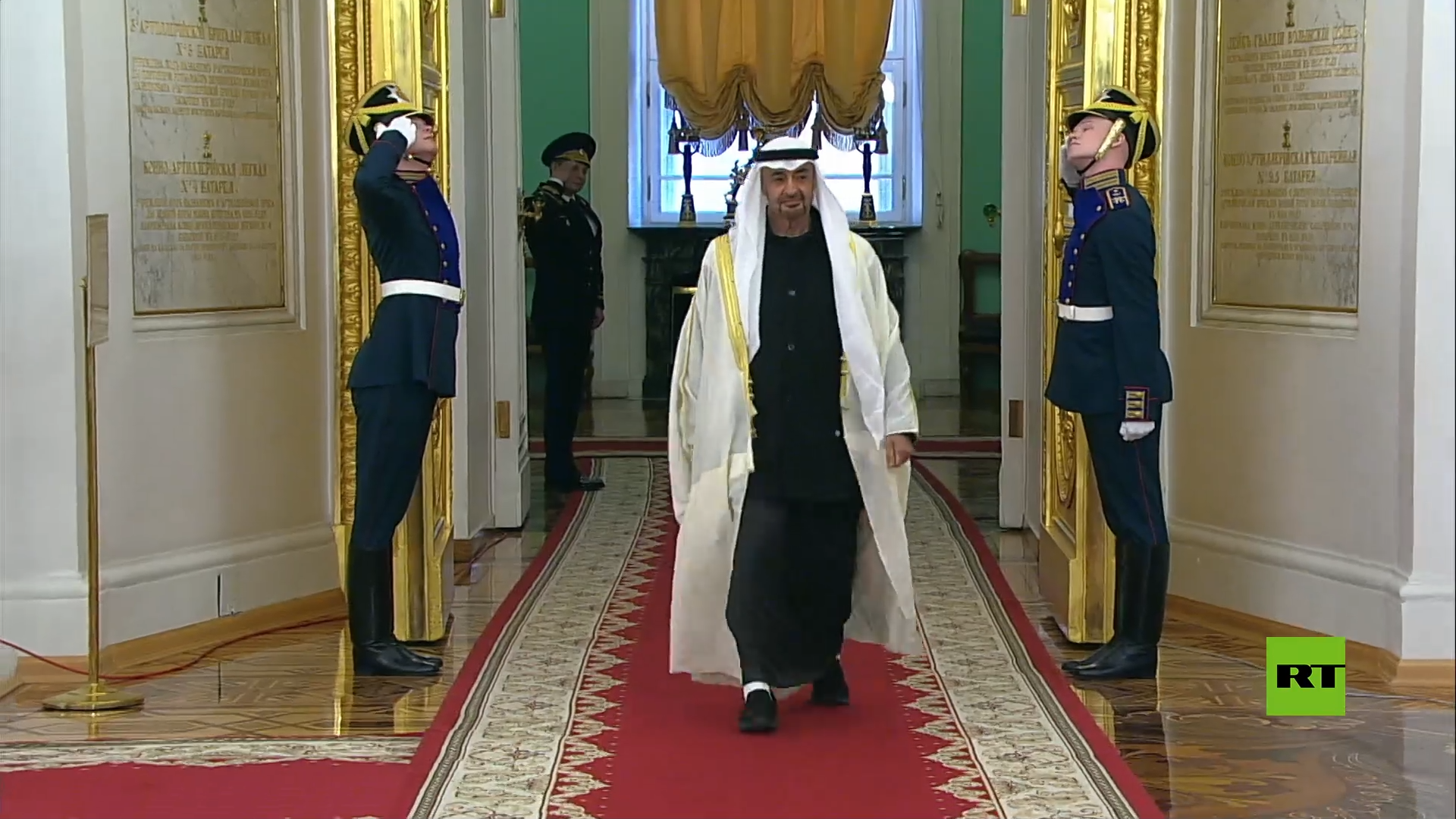 أقيمت في الكرملين مراسم استقبال رسمية للرئيس الإماراتي محمد بن زايد قبيل مباحثاته مع الرئيس الروسي فلاديمير بوتين اليوم.