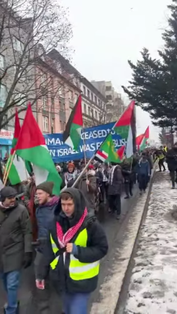 واعتبر المتظاهرون أن اتفاق وقف إطلاق النار في غزة لم تحترمه إسرائيل، وبالتالي فإنهم سيواصلون التظاهر والضغط على الحكومة الألمانية لمقاطعتها وقطع العلاقات معها، منتقدين زيارة مسؤولين ألمان إلى تل أبيب.