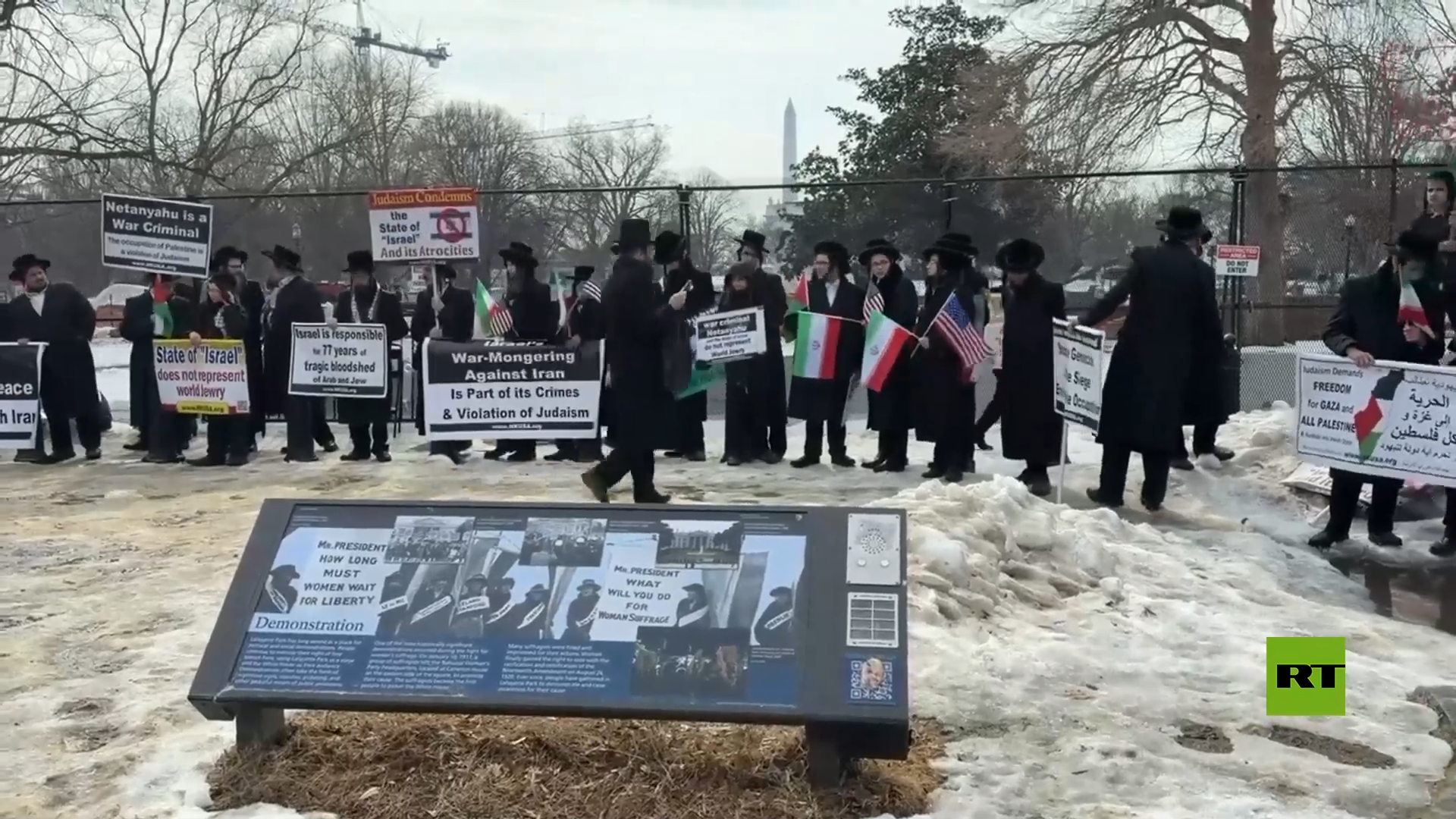 تعالت خارج أسوار البيت الأبيض في العاصمة الأمريكية واشنطن أصوات المحتجين ضد زيارة رئيس الوزراء الإسرائيلي بنيامين نتيناهو ولقائه الرئيس دونالد ترامب.