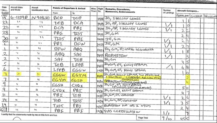 سجلات الرحلات التي تؤكد وجود ركاب كانوا يسافرون من وإلى بريطانيا على متن طائرة إبستين