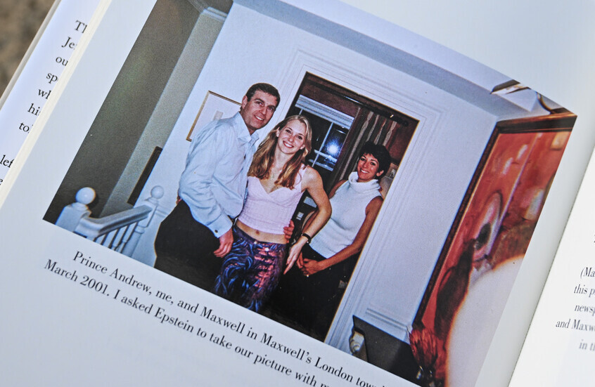 صورة من مذكرات ضحية إيستين الشهيرة فيرجينا جيوفري "فتاة لا أحد"، تظهرها مع الأمير السابق أندرو وغيسلين ماكسويل المدانة بجرائم جنسية. / Gettyimages.ru
