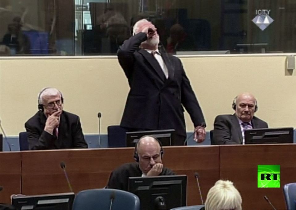 وفي وقت سابق من اليوم الأربعاء، تجرّع برالياك السم من كوب، وقال: "أنا لست مجرم حرب، وأرفض التهم"، وذلك خلال جلسة المحكمة الدولية الخاصة بيوغسلافيا السابقة، حيث تلا القاضي قرار المحكمة بتأييد الحكم بالسجن 20 عاما الصادر بحق برالياك في وقت سابق.